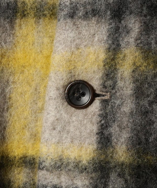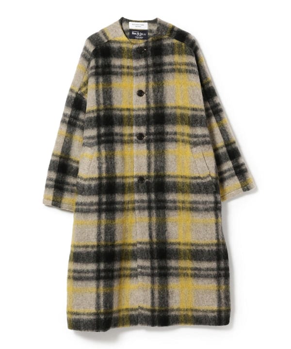 BEAMS BOY / スライバー タータンチェック ノーカラーコート 22FW