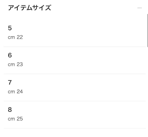 私は22.5cm、甲高、幅広でスニーカーは23.5cmが多いですが、