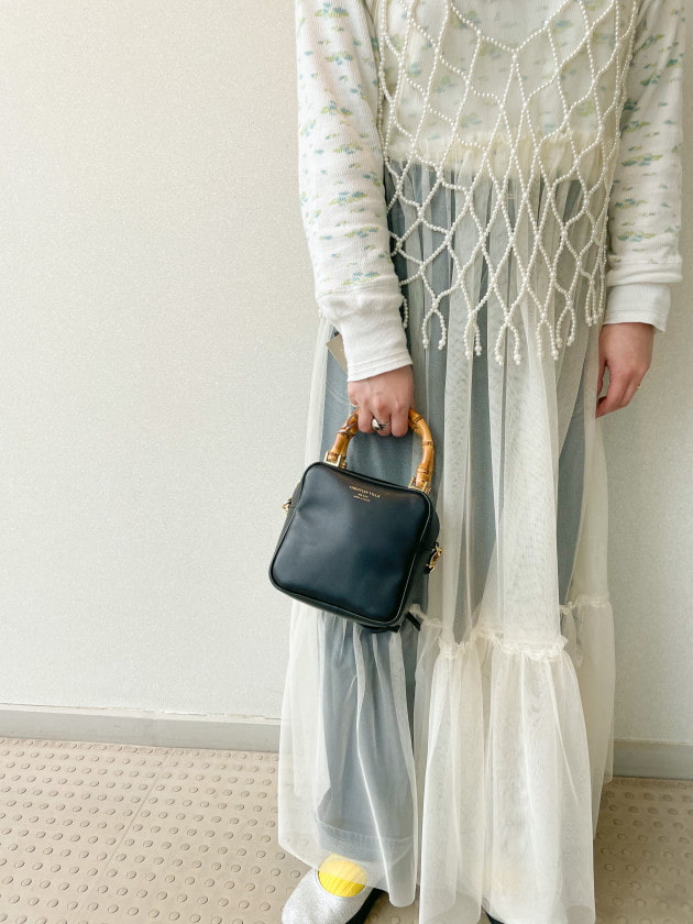 CAROLINA GLASER / パールベスト付き チュールワンピース