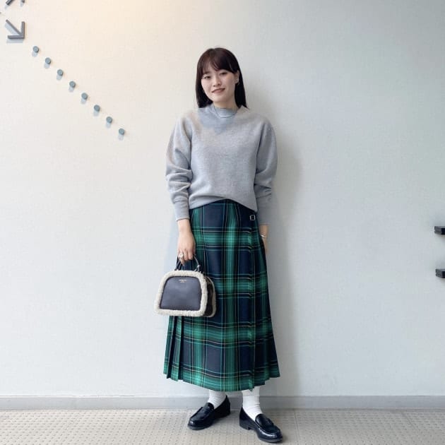 シンプルにグレーのスウェットを合わせたスタイリングです!
