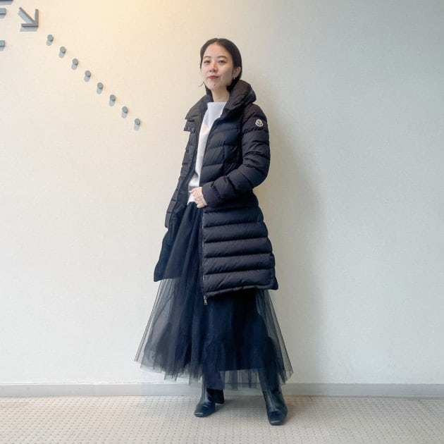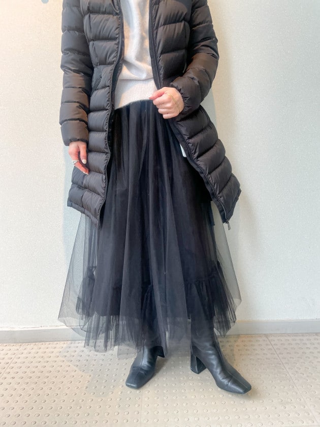 ウエストのラインが強調されているので、あえてスカートを合わせてみました!