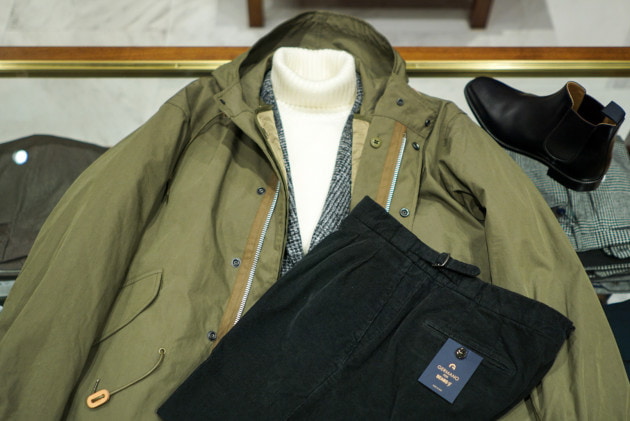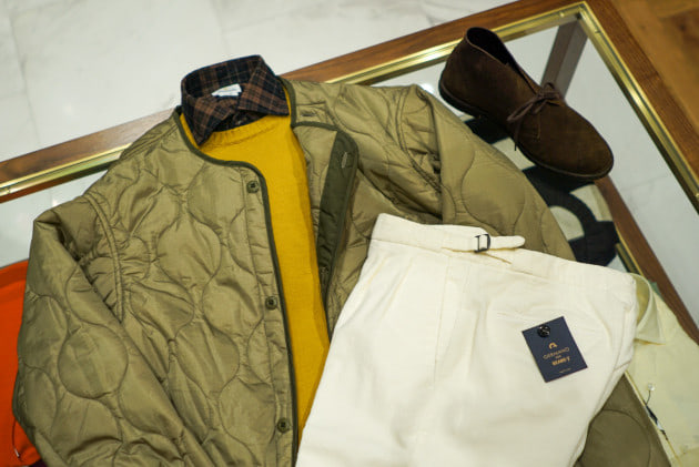 ホワイト、ブラック、ブルー、ブラウンカラーの入ったジャケットはTAGLIATORE。