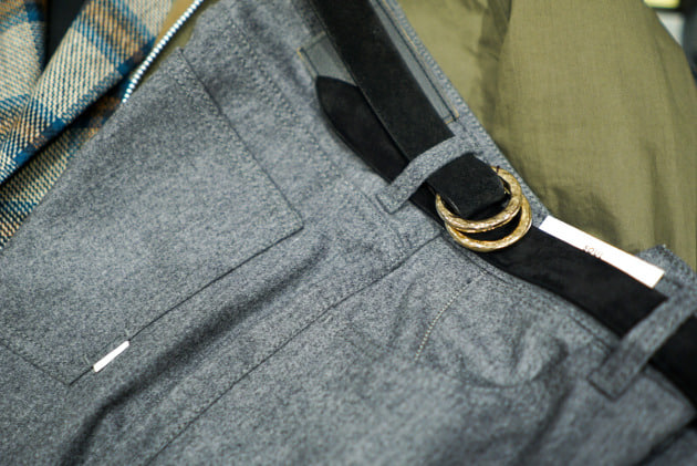 ベルトはブラックスエードのリングベルトで品良く纏めます。