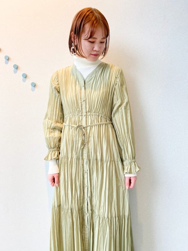 Ray BEAMS / ワッシャー プリーツ Vネック ワンピース