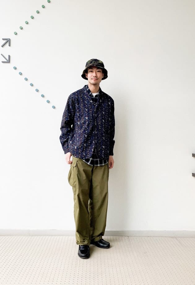 柄同士でも落ち着いた色合いで合わせて頂ければスタイリングに落とし込みやすいです。