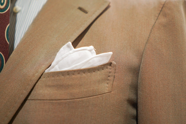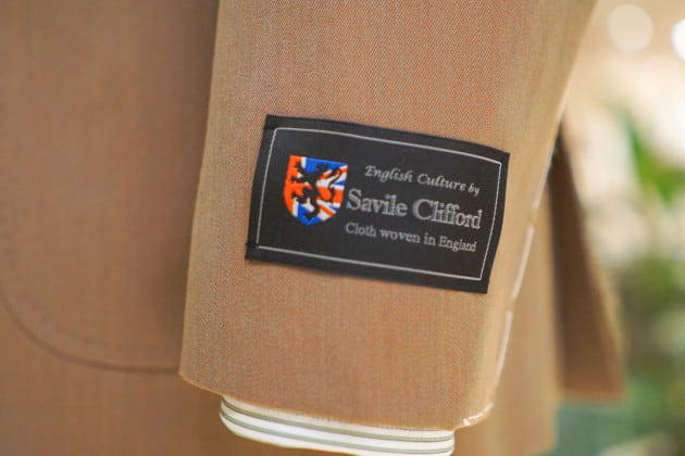 スーツには、Savile Cliffordのコットンウールのソラーロ生地が使用されています。