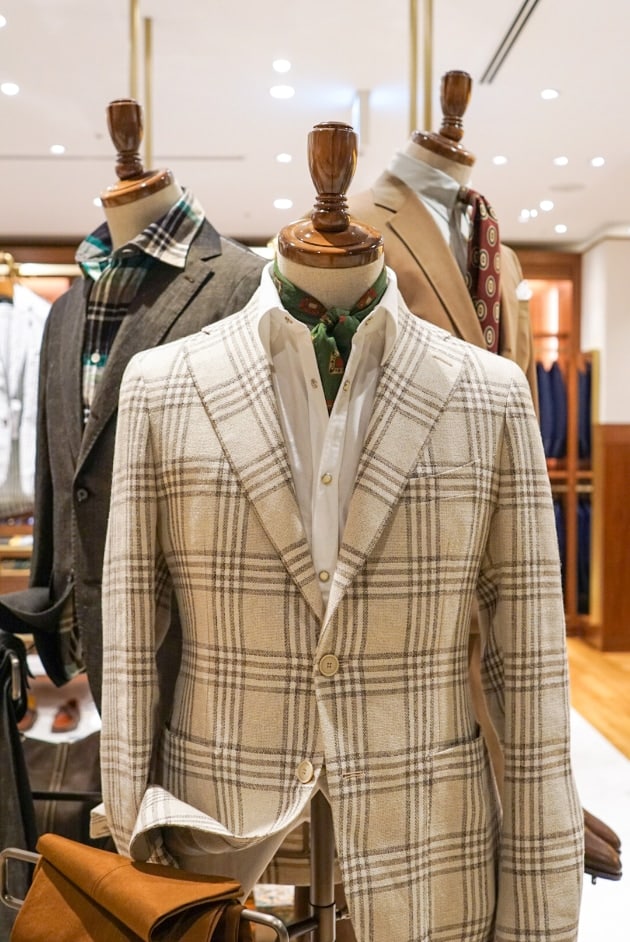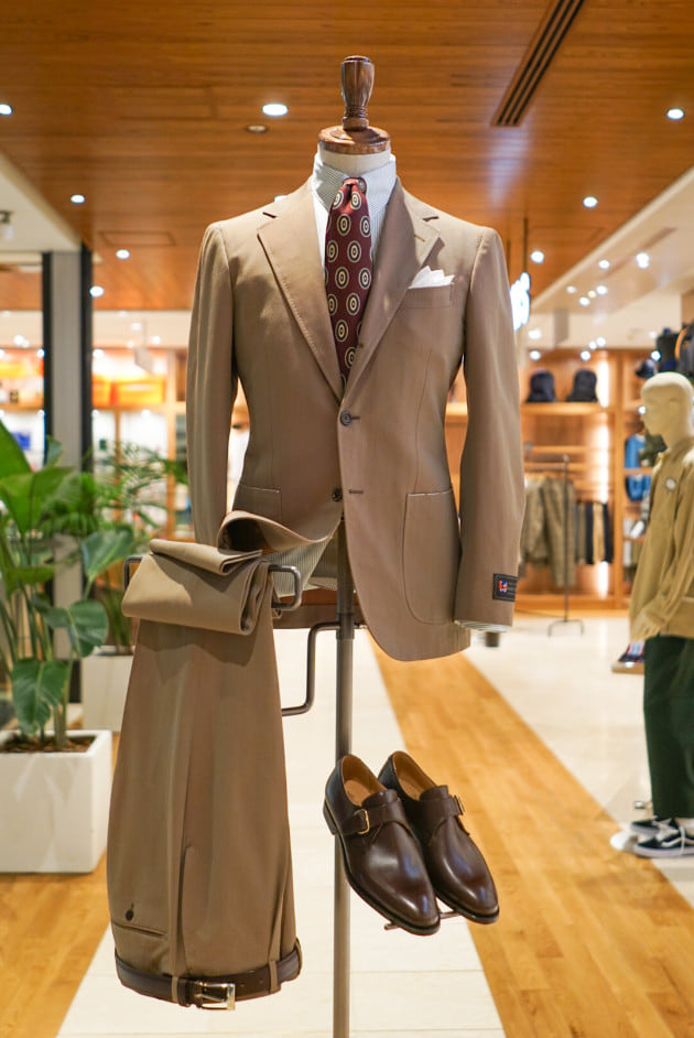 ソラーロ生地のスーツをイタリアンカラーでコーディネートしています。