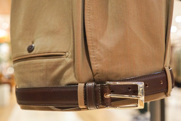 シューズ、ベルトはスーツに準じて色を揃えたかったので、ダークブラウンを選んでいます。