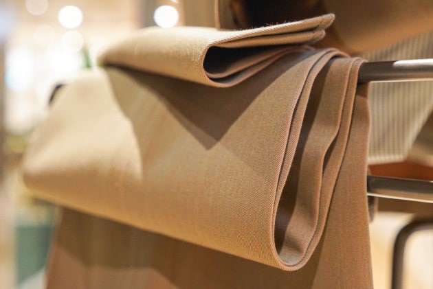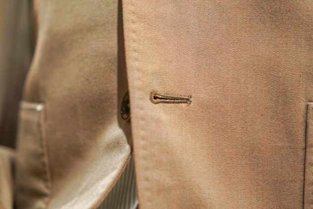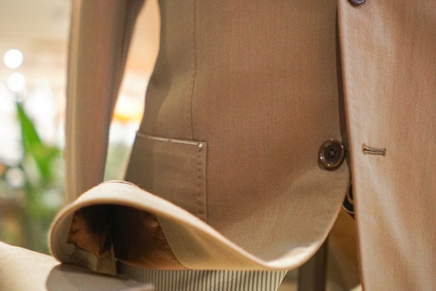 単色一枚生地のコットンスーツとは映り方が全く違います。