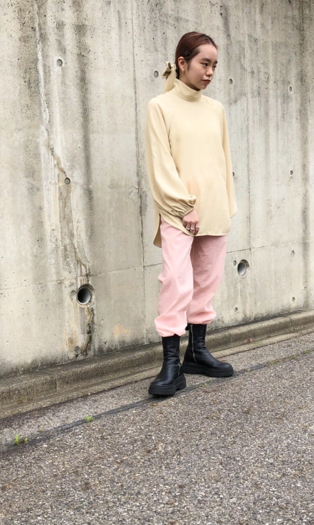 大きめのリボンが特徴的なブラウスなので、甘めなスタイリングにしておけば、まあとりあえずは間違い無いでしょう!