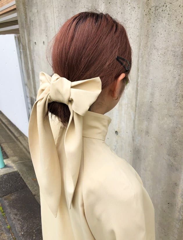 リボンがとても長いので、こんなふうにヘアアクセサリーのように結んでいただくこともできます!