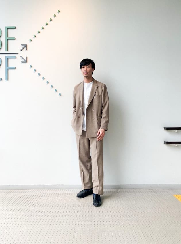スラブ織が特徴的なコンフォートジャケットのセットアップスタイルのインナーに。
