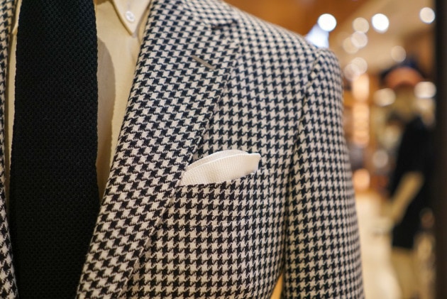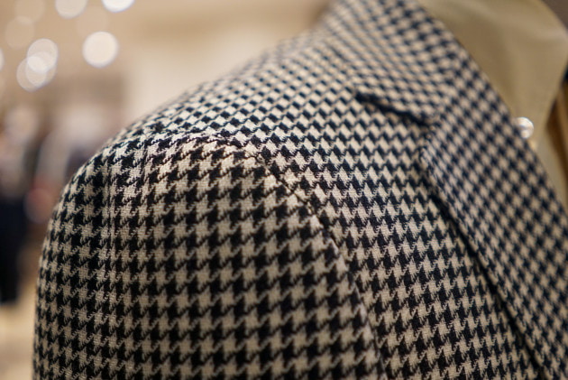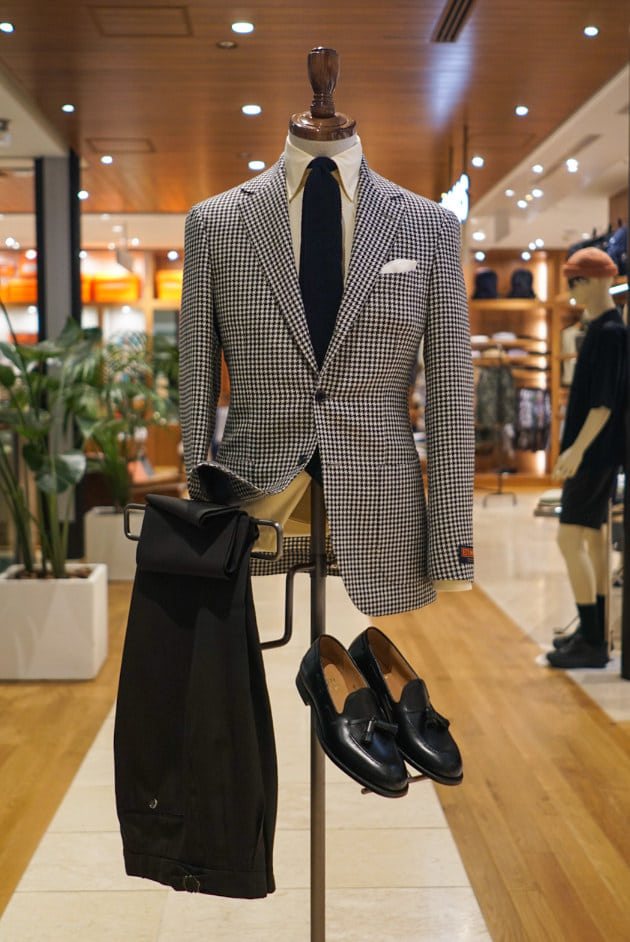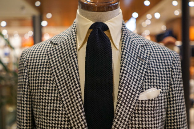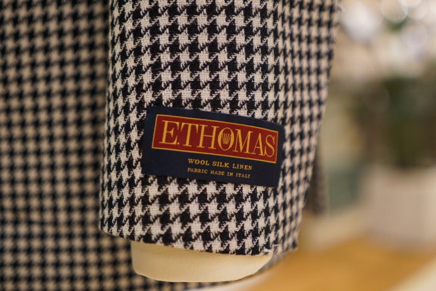 E.THOMASの生地を使用したハウンドトゥースチェックジャケット。