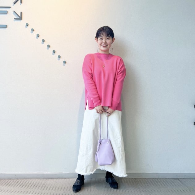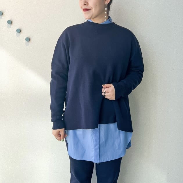 スウェットニットでもカジュアルになりすぎず、上品な印象です◎