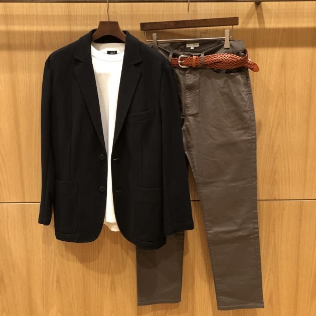 カジュアルコーディネートをオススメしたいです。白のカットソーに、オリーブのパンツ・レザーのメッシベルトでバッチリです。