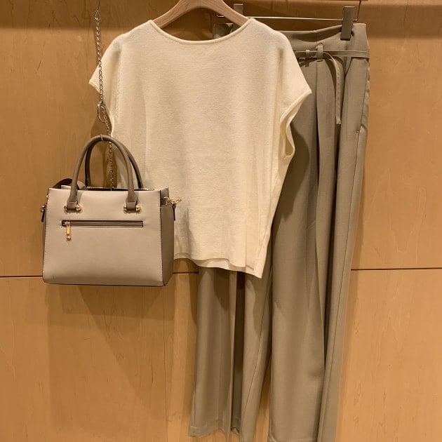 ベージュのパンツと合わせて、オフィスカジュアルを意識しました。