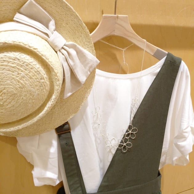 こちらのワンピースならTシャツ、ブラウスなどなど、お気に入りのトップスと組み合わせることが出来ます^^