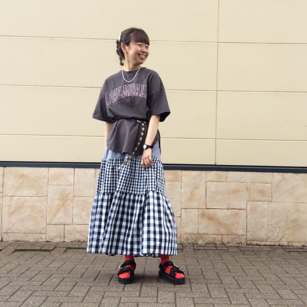 オーバーサイズのTシャツを合わせていますがティアードのシルエットも見せたい…!