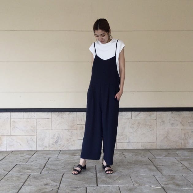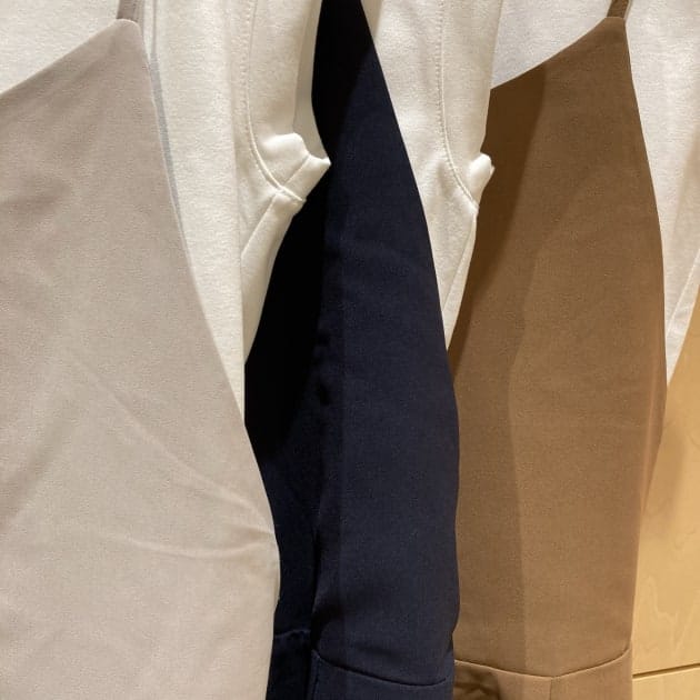 しっかりした生地感ですが、やや表面に光沢感があるので、きれいめな印象に。
