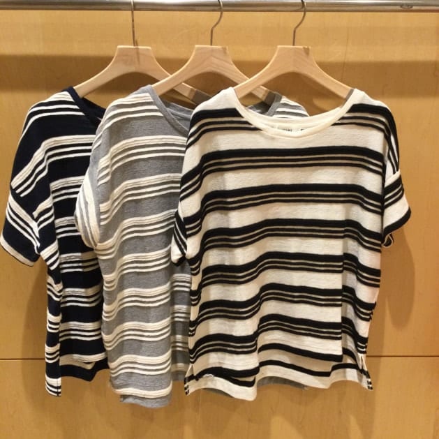 ボーダーといえば、やはり定番ですがランダムなボーダーなのでカジュアルになりすぎず取り入れやすいかなと思います^^