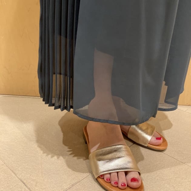 裾の裏地は、表のシフォン地より短めになっていて、透け感があるので、より涼しげな印象に!
