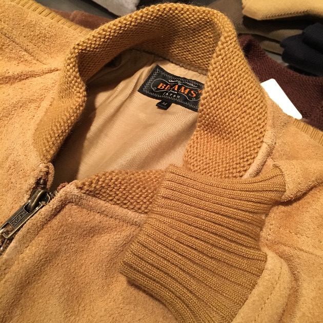 しっかり起毛感がありちょっとした汚れは気にせずにガシガシ着れそうなスウェードレザー、太いデニムやチノパン、軍パンにも負けない良い意味で野暮ったいシルエット、クラシックな雰囲気のリブ、どの部分を取っても本当に探していた形そのものです。