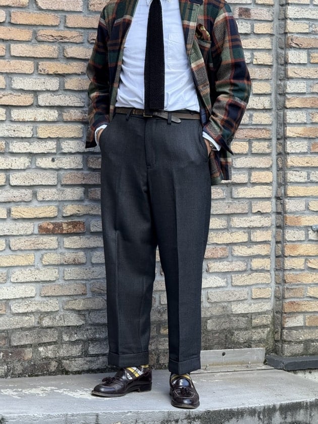 - 『IVY Trousers Wide Wool Double Weave』を合わせてトラッドにスタイリングしました。