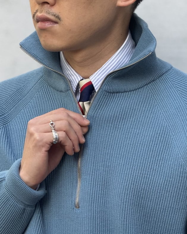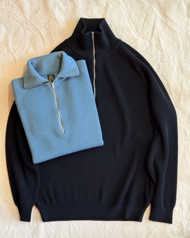 3年間から定番の<BATONER>別注のハーフジップニットです。