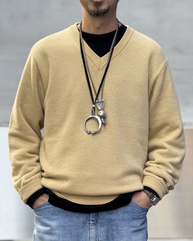 同じく<BATONER>よりキャメルヘアーを使用したVネックニットです。
