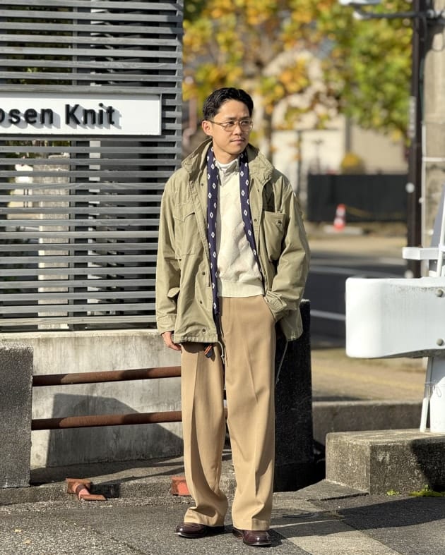 カジュアルアイテムをドレスアップして着用して頂くのもオススメです。