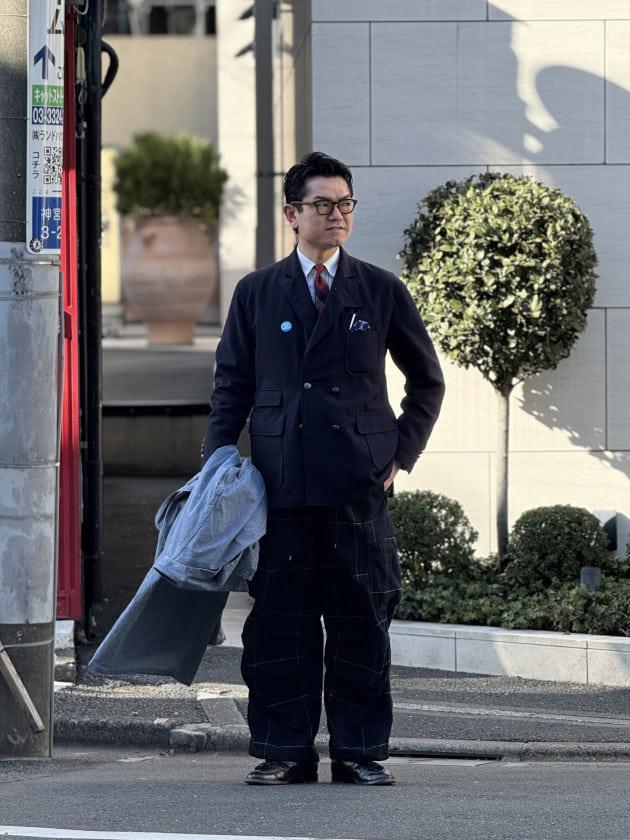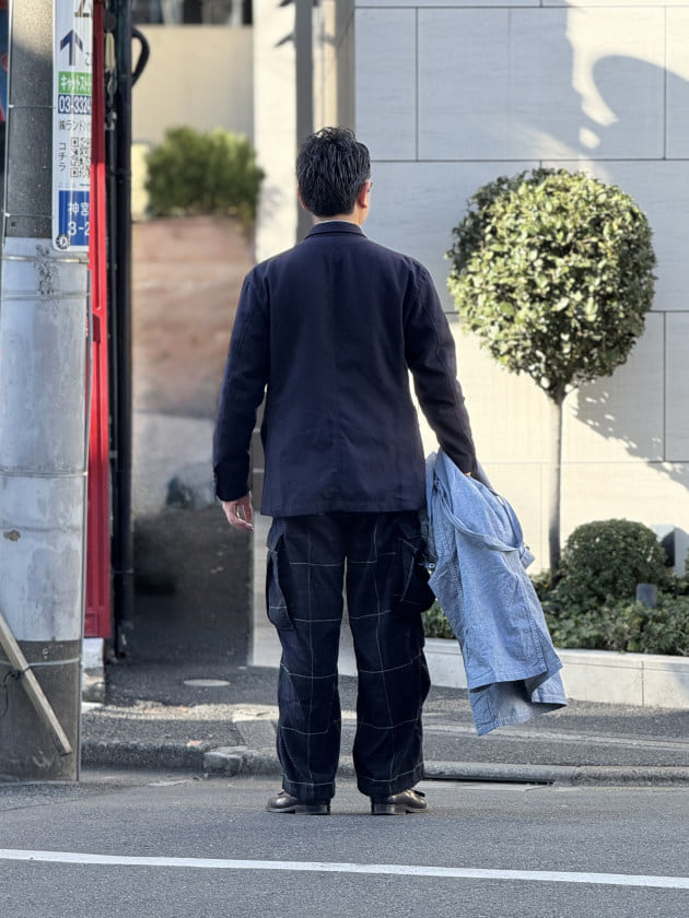 続きまして、ブレザーのご紹介です。長らく複数のサイズが欠品しておりました MID FIELD DOUBLE BRESTED BLAZER UNIFORM SERGE。先日追加入荷がございました。やっぱりカッコいいですいし、洗えて、洗いざらしもOKと扱いやすくて、温かくて、耐久性も◎なUNIFORM SERGE(生地)。本当に頼りになる1着であることは・・・マチガイナイべ⤴。※私でSサイズを着用。