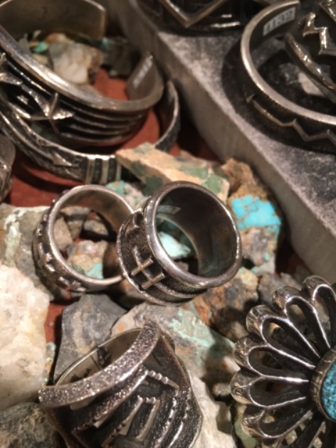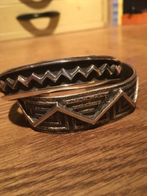 トゥファキャストと呼ばれる、石にデザインを刻み、シルバーを流し込んで作る技法を