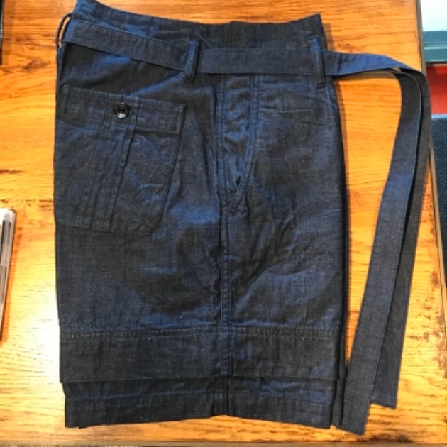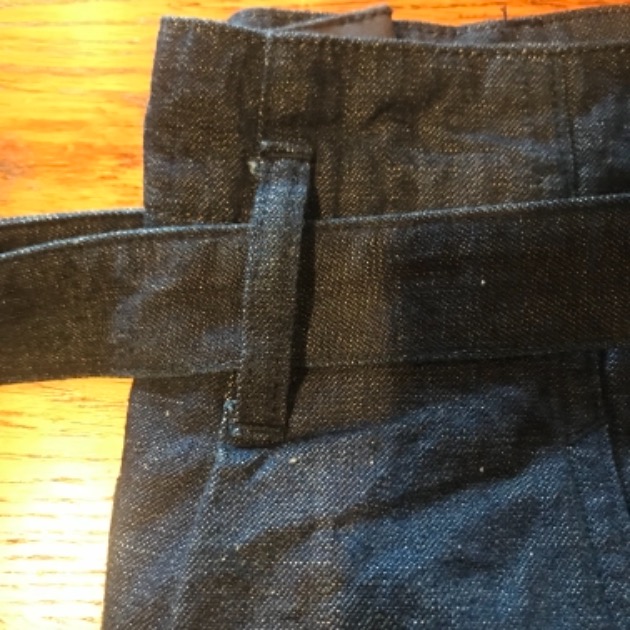 ワンサイズあげて、付属している同素材のベルトをグッと締めても良さそうな。。