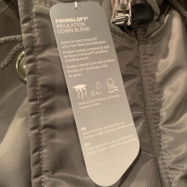 中身は、プリマロフト(PRIMALOFT®️)のマイクロファイバーとダウンの40/60の組み合わせ。