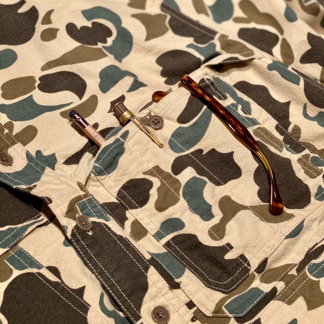 カラーはウッドランドカモとダックハンターカモ、ネルシャツの上にプリントを施したモノをイメージしていただくとわかりやすいかと思います。