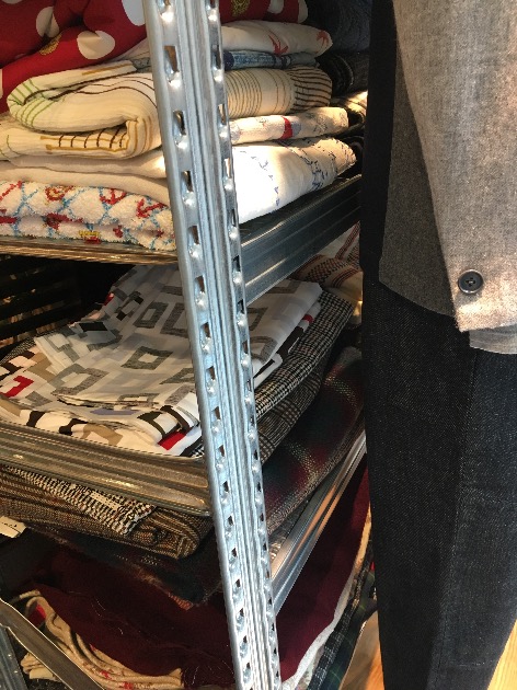 棚いっぱいに埋まった生地や洋書、写真。