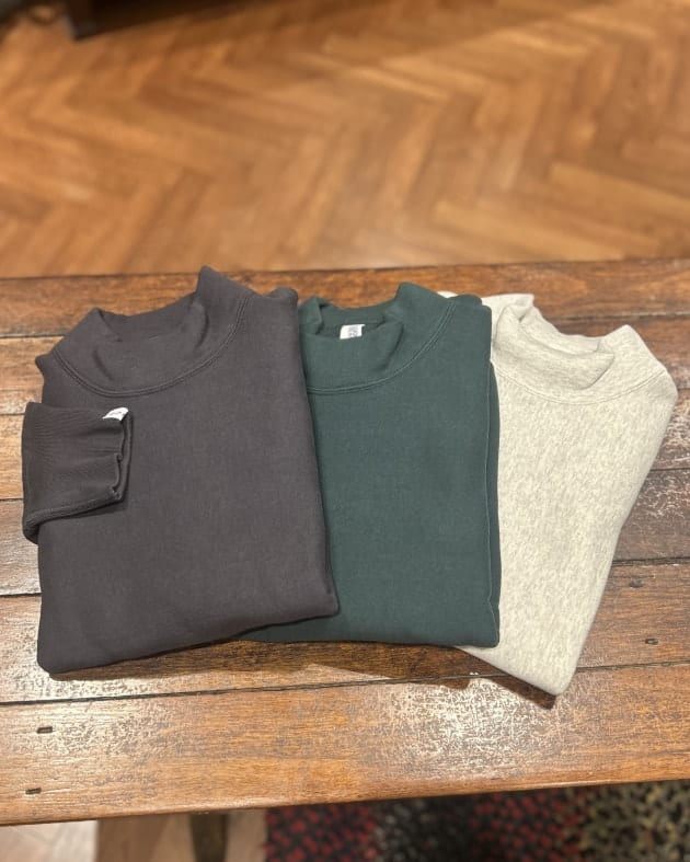 いずれのカラーも共通しているのは、起毛生地ならではの柔らかさと安心感のある着心地。大活躍間違えなしの100年起毛シリーズのモックネック型を是非ご検討ください!
