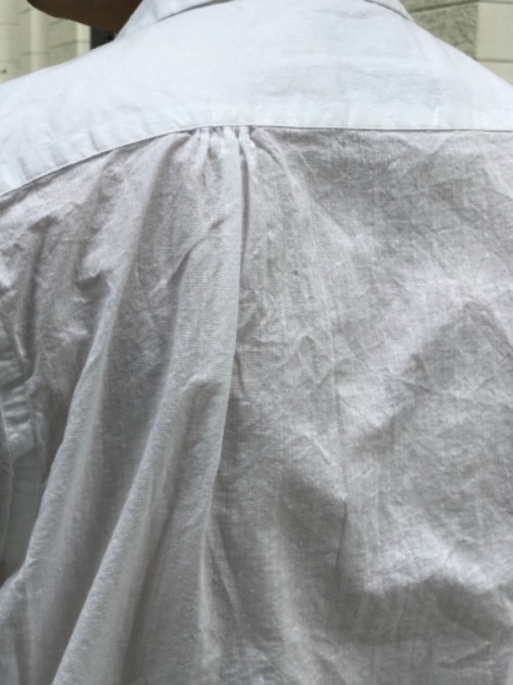 大ぶりのフラップポケット、ヨーク下のギャザーが生地とマッチし立体感が生まれています!