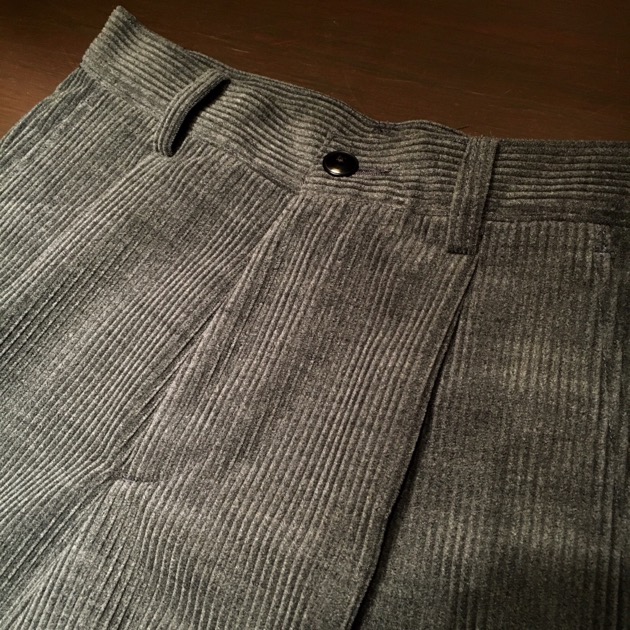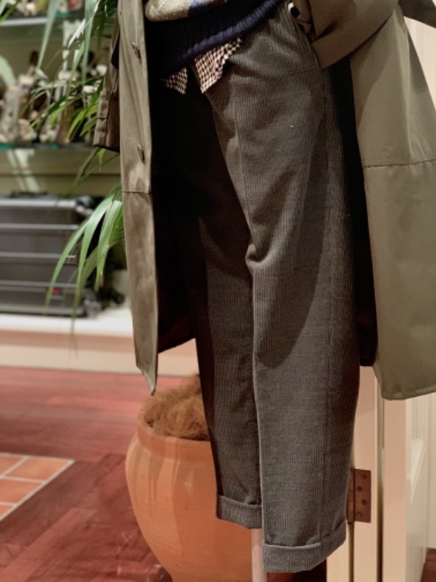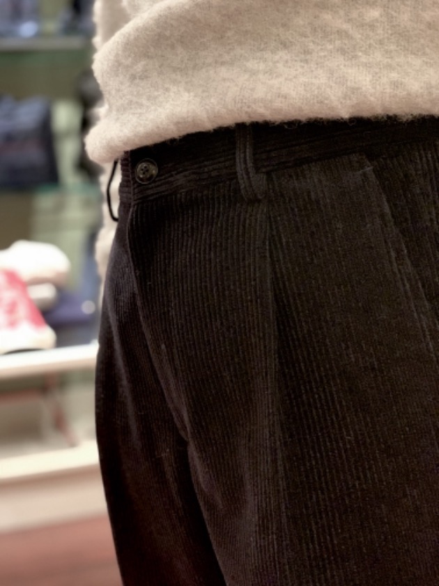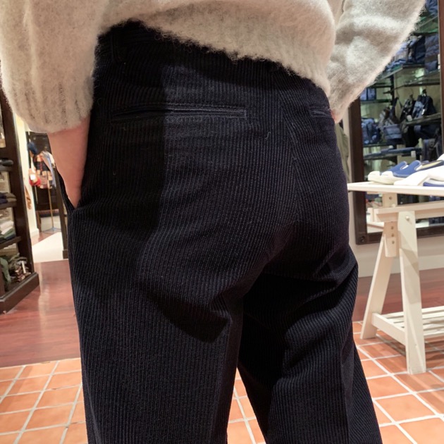 コーデュロイだと綿素材の物が多いですが、今回はウールメインのファブリックです。まさに冬に履くには最高の一本かと。