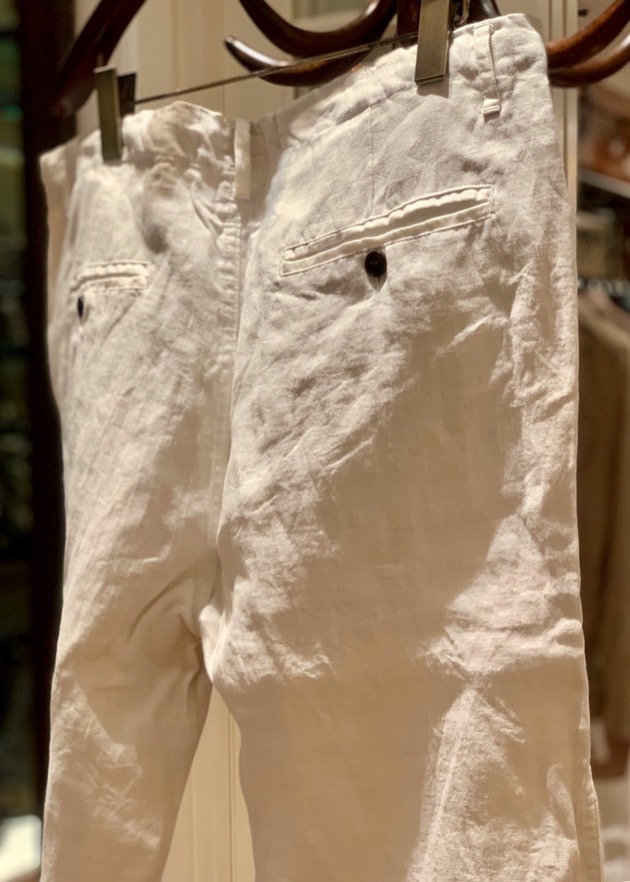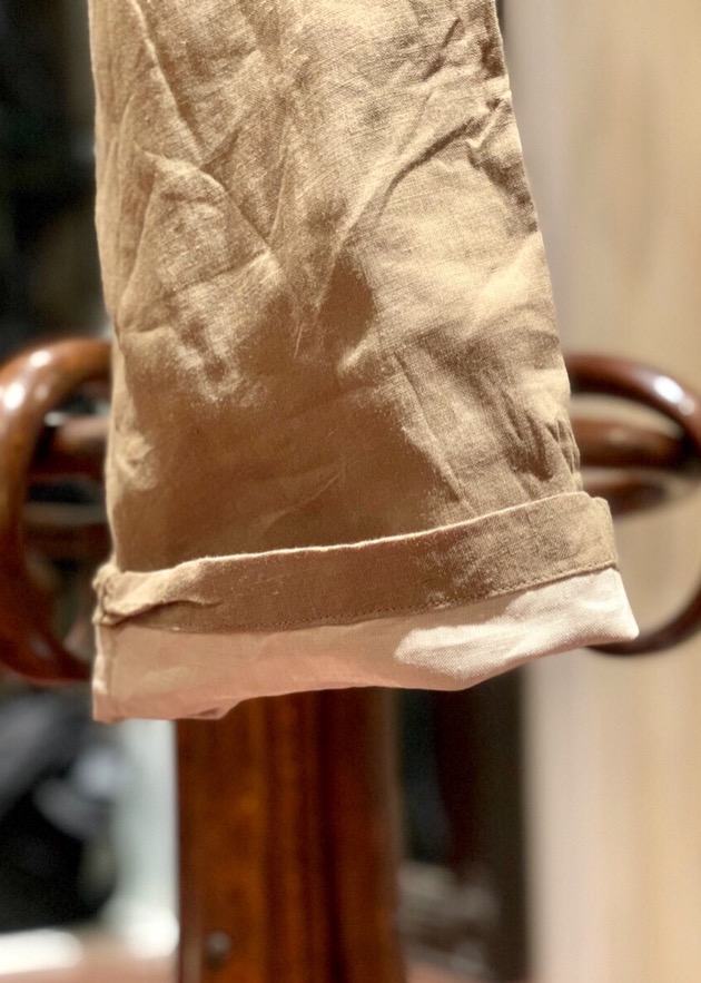 ラミーのやや光沢感ある生地を表にし、ソフトなタッチのリネンを裏に使う事で上品さ・履き心地が何よりも素晴らしい仕上がりです。