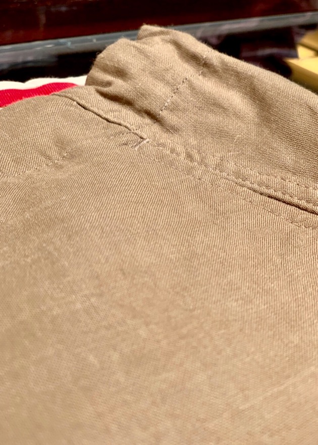 既に製品洗いが掛かり、生地に表情が出てきてますが、着用による腿や膝裏にできるシワ感等、あえて表情を楽しんで頂きたいです。