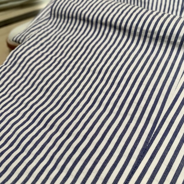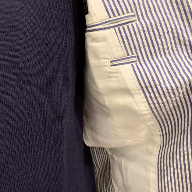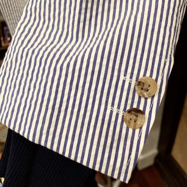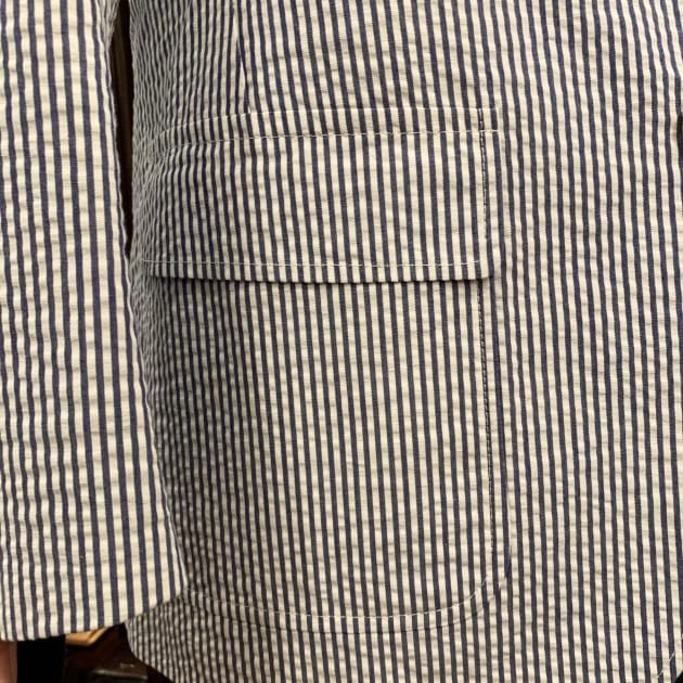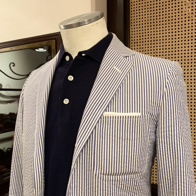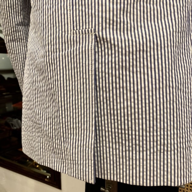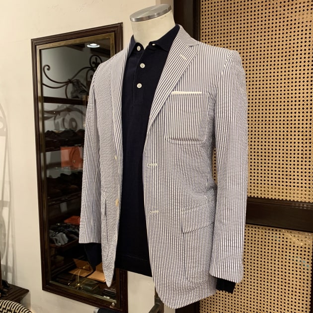 こちらは関西のBEAMS PLUSスタッフの昨年のオーダー、SAX×WHITEのシアサッカーストライプです。