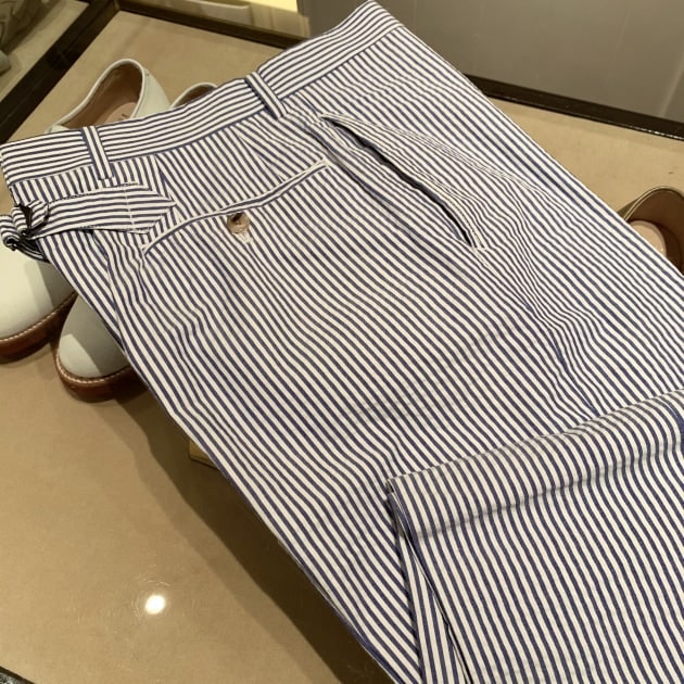 まずはウィンドウディスプレイでもあったマドラス・ベージュのコットンスーツなどと同じく、夏のアメリカンスタイルとしても定番であるこちら!