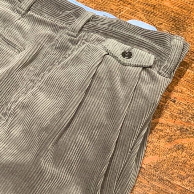 フラップ付きのコインポケット、2プリーツ(インプリーツ)でトラディショナルな雰囲気を醸し出しています。