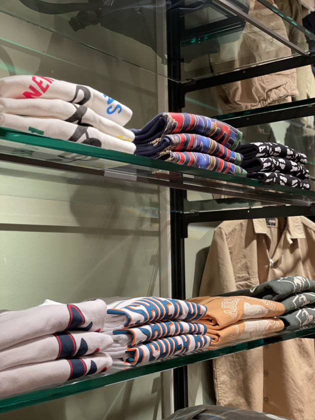 ウェアはミリタリーやアスレチックな雰囲気のアイテムを主に陳列しています。