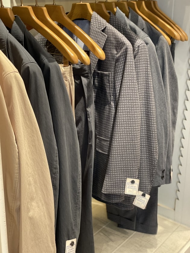 その隣にはBEAMS PLUS、特に有楽町には欠かせない3ボタンジャケットとアンクルカットトラウザーズシリーズ。