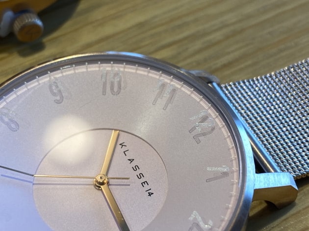 この新作はVolareシリーズ初のアラビア数字インデック。カジュアル感は増している印象ですが、ユニークな加工によって新たな表情が加わっています。