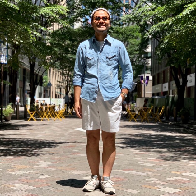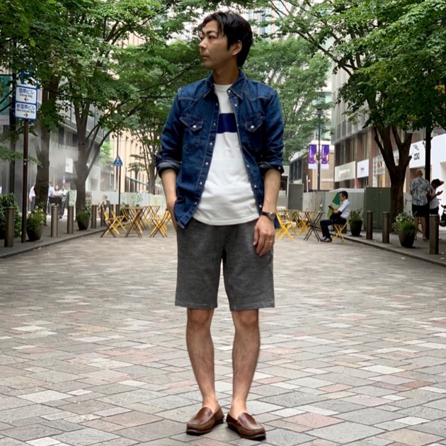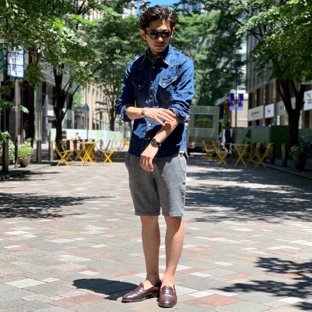 時期的には腕まくりしたり、ショーツと合わせたりと軽やかなスタイリングはもちろん、STAFF KUWATAの様にスポーツコート(ジャケット)のインナーとして合わせても楽しめます。