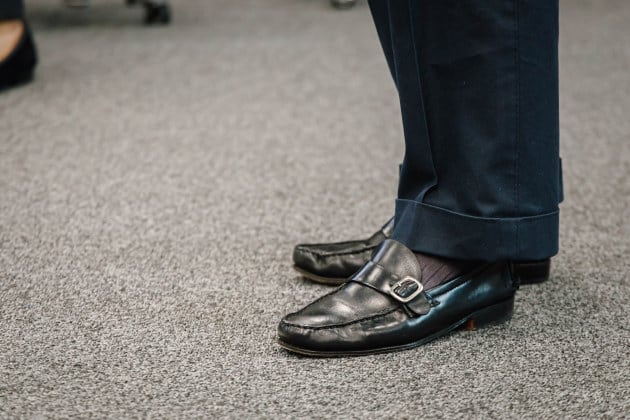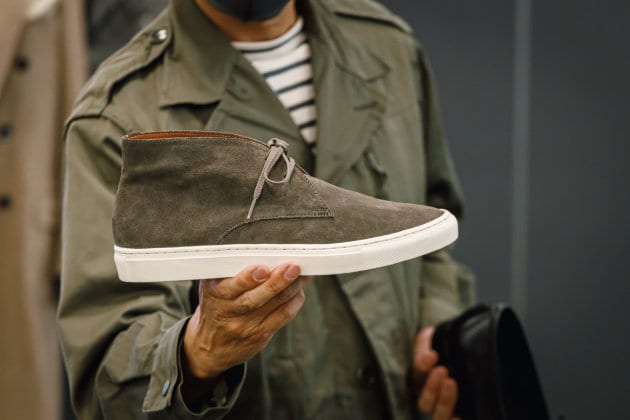 「〈GUIDO(グイド)〉。アルゼンチンの老舗シューズメーカーです。〈International Gallery BEAMS〉で展開していたブランドのモデルを革を載せ替えて展開します。以前はコードバンでの提案でしたが、今回はカーフとスエード。」