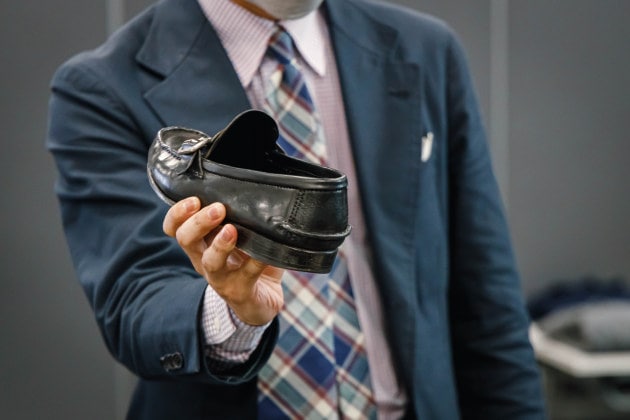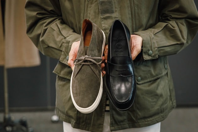 「〈POLPETTA〉。これはまだ決定ではありませんが、今のところコインローファーとハイカットスニーカーを新たに展開予定です。コインローファーは現在、コンビで展開しているものをシンプルに提案。より軽いスタイルに落とし込んでいます。」
